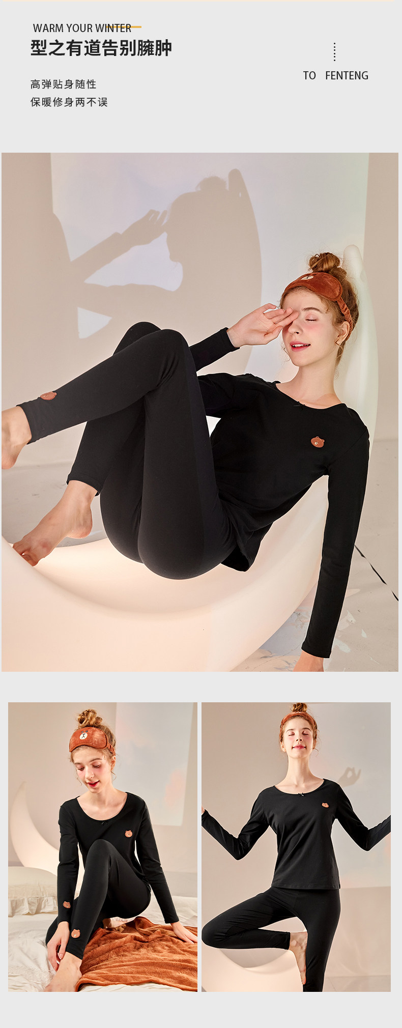 芬腾 Термобелье, хлопковые штаны, свитер, базовая зимняя тонкая пижама, удерживающее тепло нижнее белье, комплект, облегающий крой