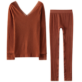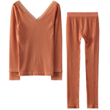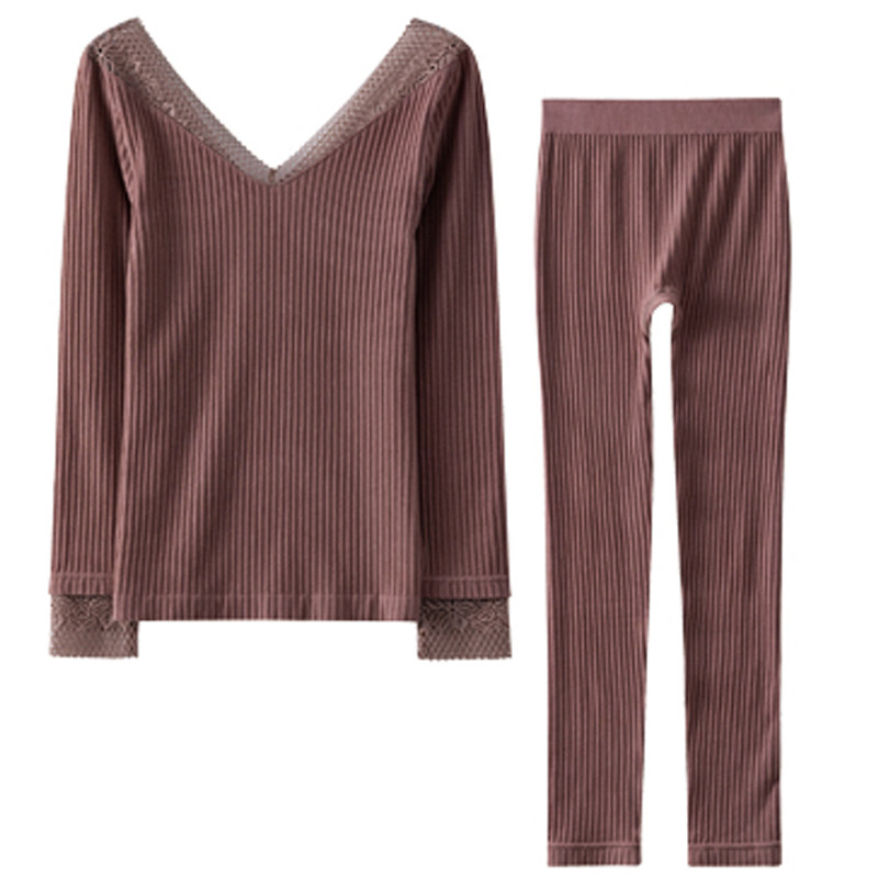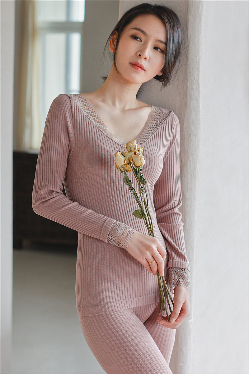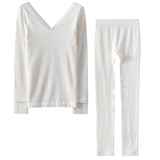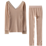 Удерживающее тепло кружевное нижнее белье, тонкое базовое термобелье, комплект, V-образный вырез