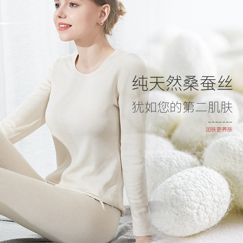 枕水人家 Шелковое удерживающее тепло флисовое нижнее белье, бархатное демисезонное термобелье, комплект, увеличенная толщина