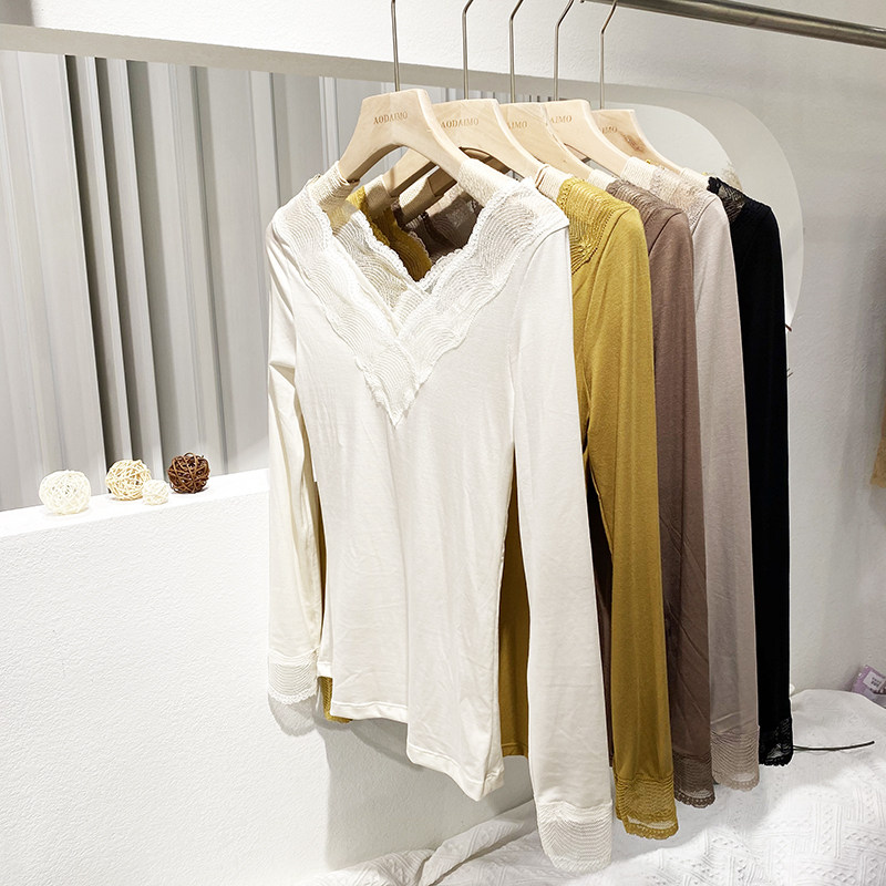 Демисезонное нижнее белье, кружевной комплект, сексуальное тонкое удерживающее тепло термобелье, V-образный вырез