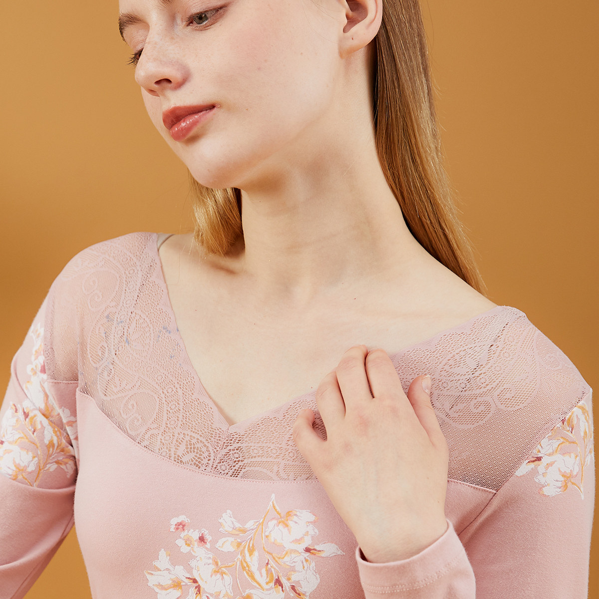 - Розовый 106 кружев V -neck Tattoo
