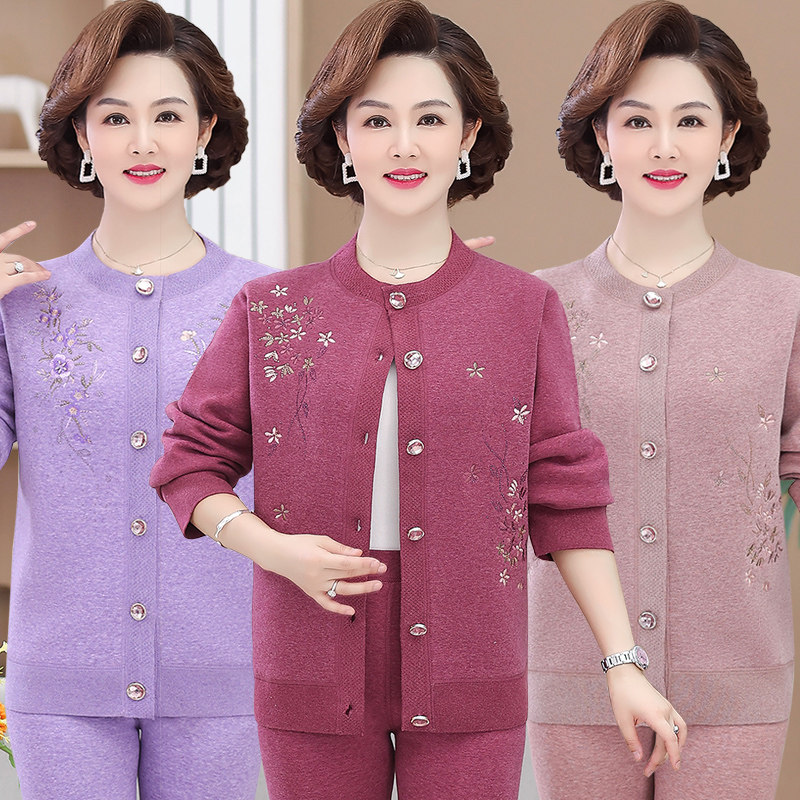 Удерживающее тепло флисовое нижнее белье для пожилых людей, базовое термобелье для матери, кардиган, зимний комплект, увеличенная толщина