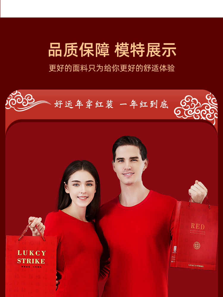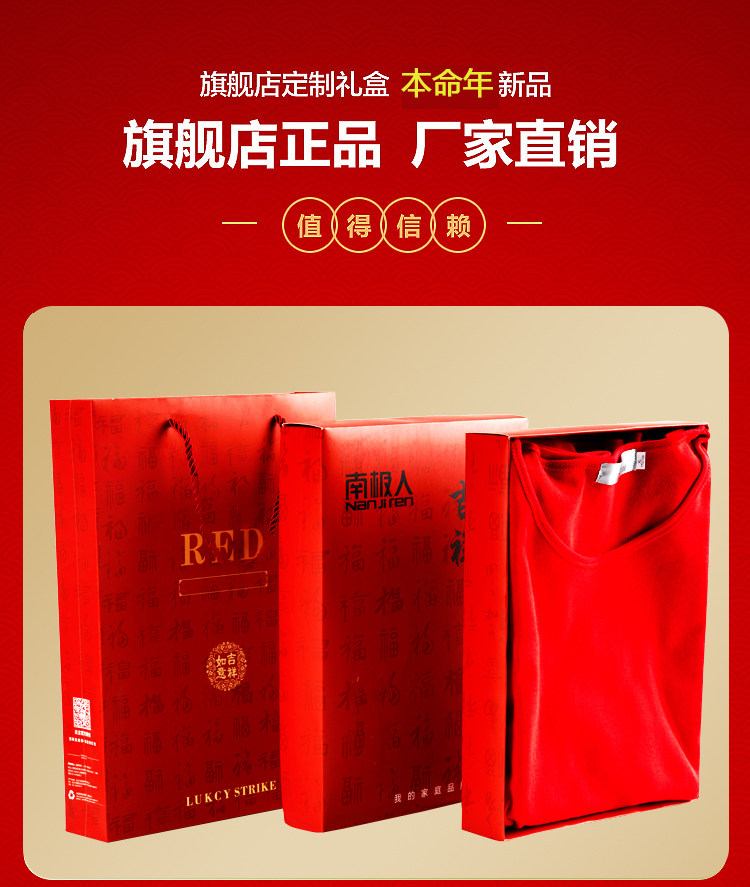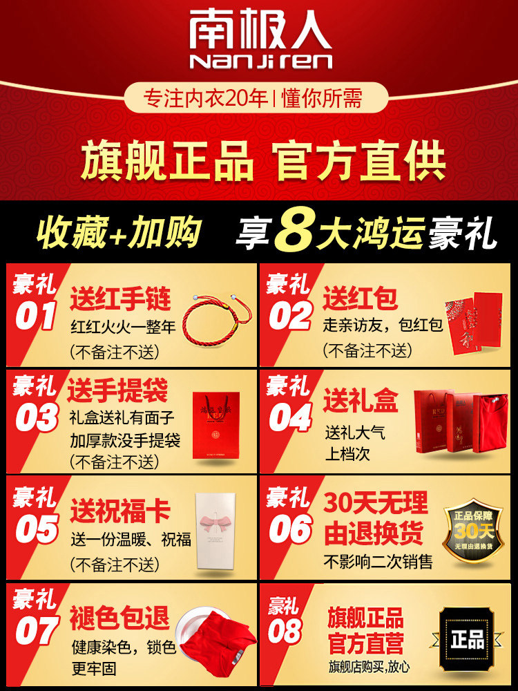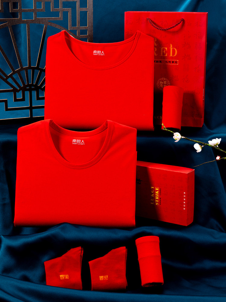 南极人 Оберег на день рождения, нижнее белье, красный комплект, хлопковое флисовое удерживающее тепло зимнее термобелье, увеличенная толщина