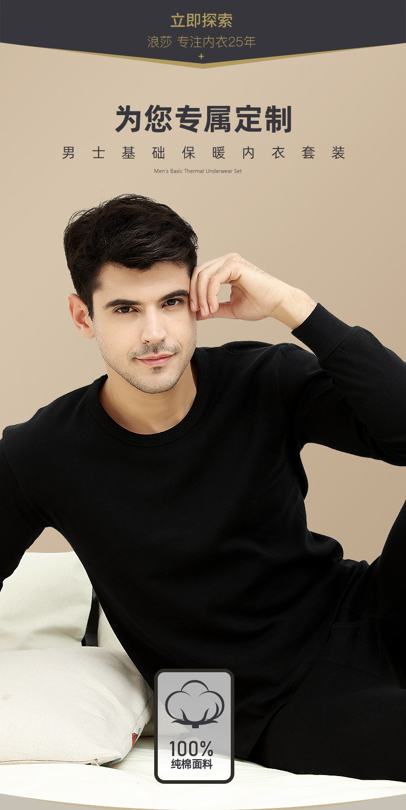 浪莎 Мужское удерживающее тепло хлопковое нижнее белье, хлопковый свитер для пожилых людей, тонкое базовое термобелье, зимние штаны, для среднего возраста
