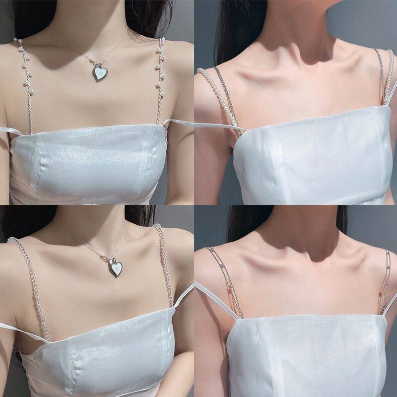 Невидимые бретели из жемчуга, нижнее белье, сменный аксессуар, прозрачный бюстгалтер, нагрудный ремень, юбка, аксессуары, цепь, эффект подтяжки