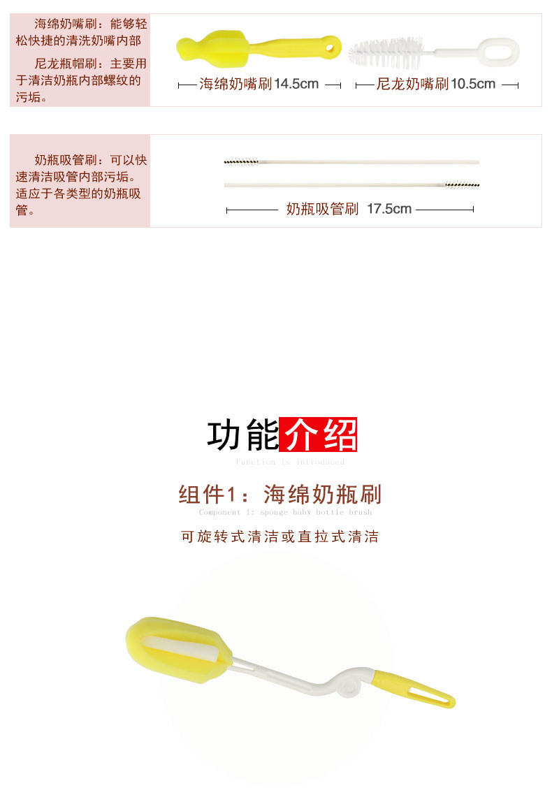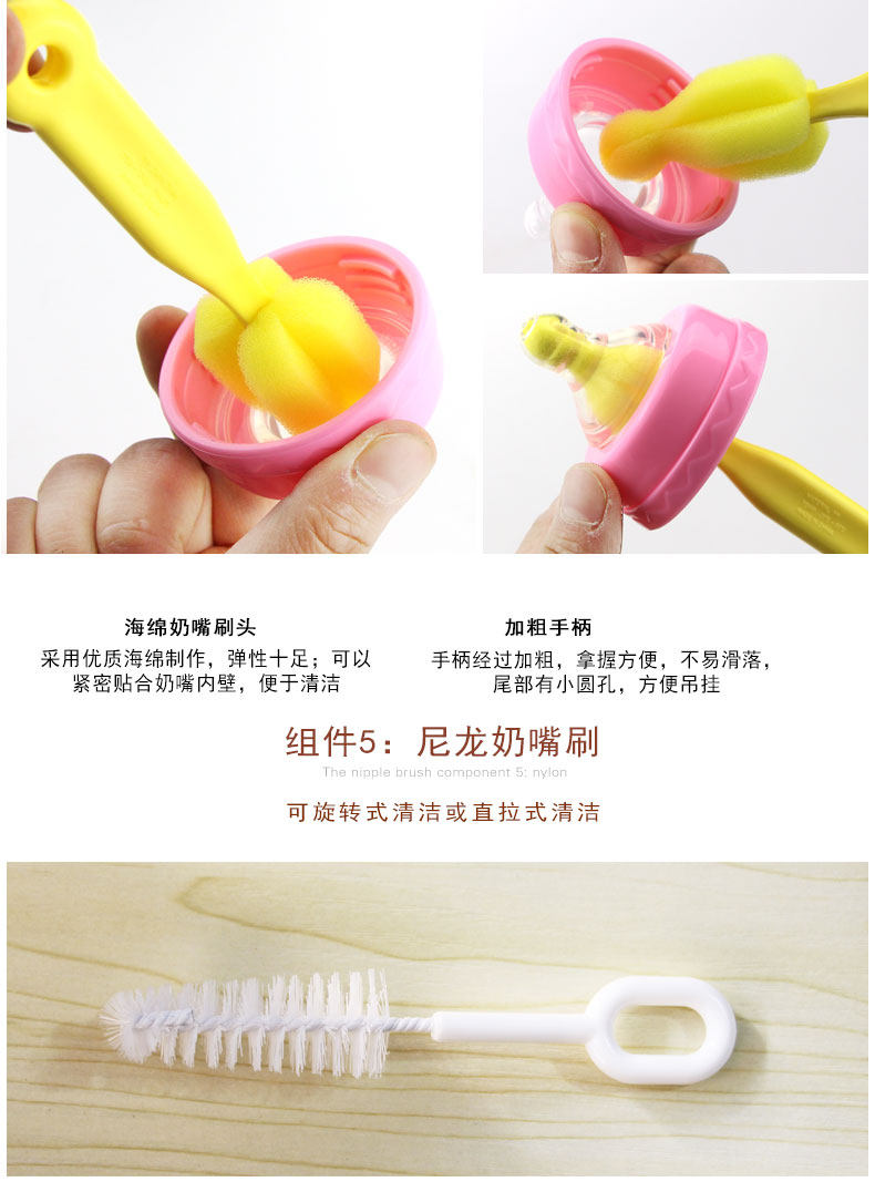 Ершик для бутылочки, средство детской гигиены, моющее средство для бутылочек, щетка, гигиеническая поролоновая щеточка, комплект