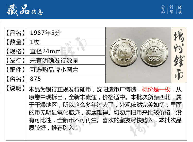 В 1987 году 5 баллов монеты Новый том оригинального света, оригинальный свет, пять очков, 875 Шанхайская квартира версия коллекции подарок монеты подлинно