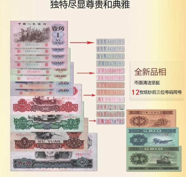 10 Юань для великого единства, 5 юаней для создания стали, 2 юаня для рабочей работы, 1 юань для трактора, 5 углов для текстиля, 2 угла для моста, 1 углы для образования и производства, 5 минут для Пара, 2 минуты для самолета, 1 минута для грузовика