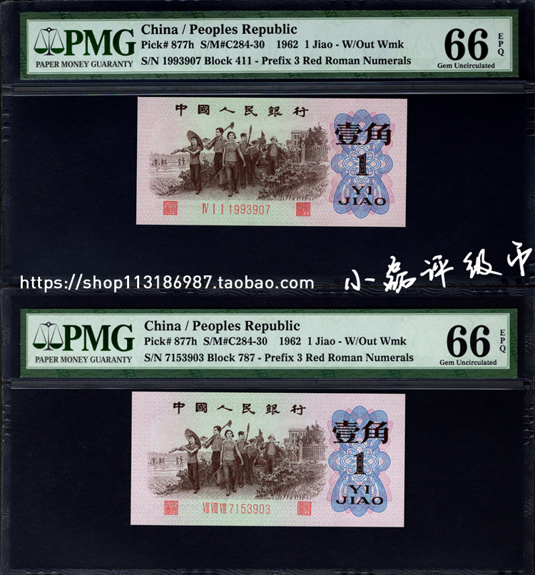 PMG评级币66分 第三套人民币红三罗马一角 三版1角 红三平 红三罗