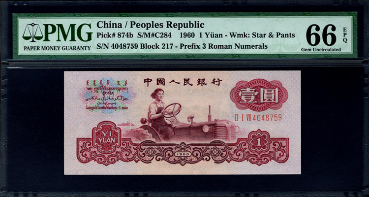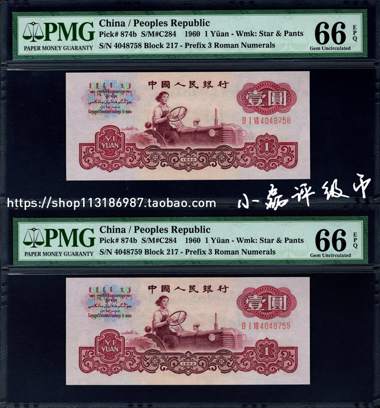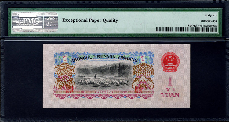 Рейтинг PMG Монета 66 очков, третий набор древних тракторов монет RMB, одно юань -три издания, 1 юань, древняя валютная водяная знак