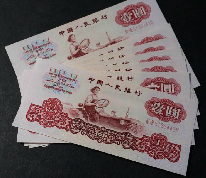 Третий набор римского трактора 2 RMB в 1960 году, один раунд, 1 юань одно банкнот Утилизация реальной валюты