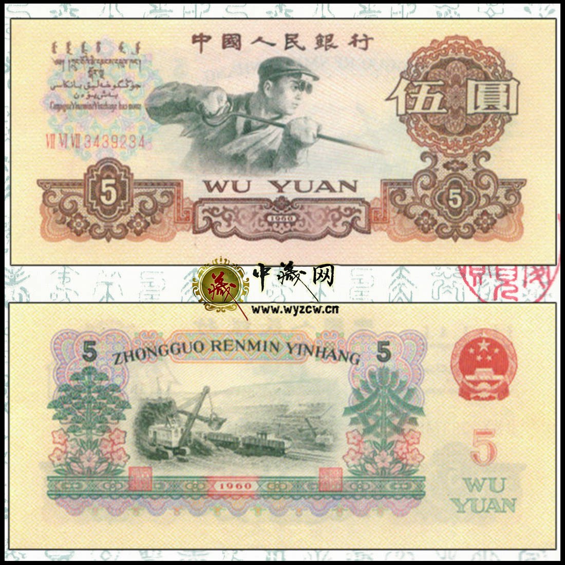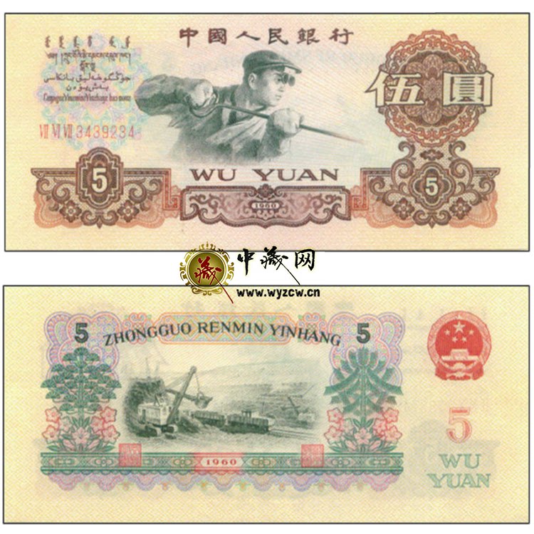 Третий набор новых стальных работников RMB - 5 юаней, пять юаней и Wuyuan Three Roman Star Watermark Banknotes
