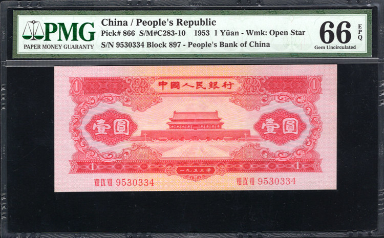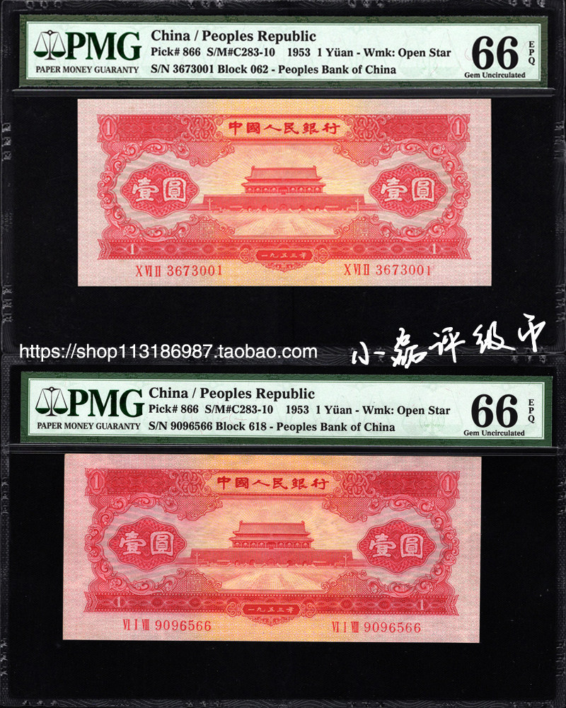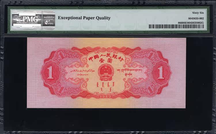 PMG Rating 66 очков, второй набор RMB Tiananmen Red One Yuan 2 -й версии красного юаня Tianannmen Red 1 Yuan