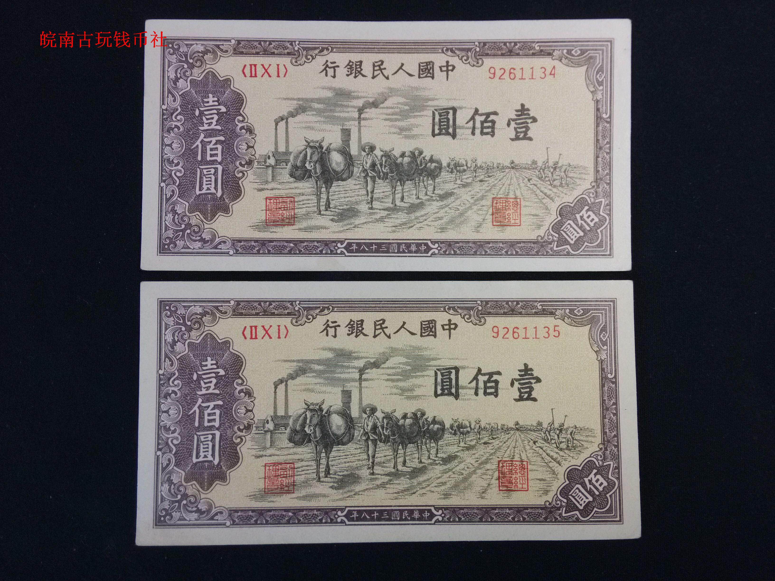 Одна версия валюты RMB Сто Юань 100 Юань 100 Юань, которая транспортируется в 1949 году два последовательных числа