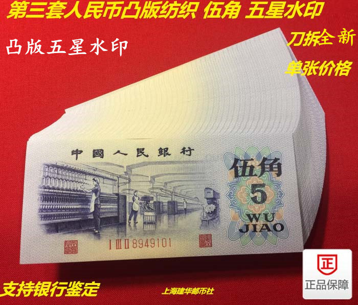 Третий набор текстиля RMB Wujiao пять углов пять -звездочные водяные знаки пять -корн. Один кусок банкноты новая реальная валюта