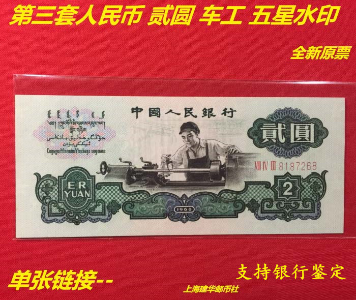 Третий набор автомобильных работников RMB -2 юаня два -юань из пяти звездных отметок одиночной новой банкноты реальной валюты