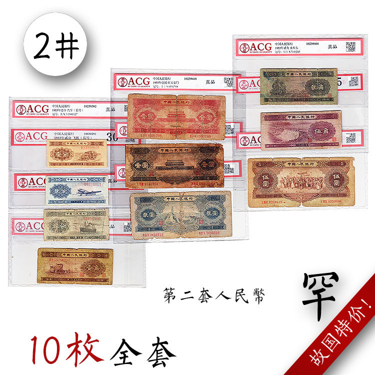 Оценка ACG Валюта Второй набор из RMB Yellow Five 2 Red Black One Yuan One Horn Long Number 125 центов Полный набор банкнот 2V