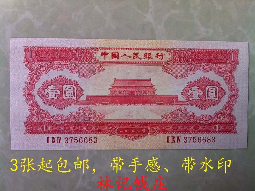 Второй набор RMB Red 1 Yuan 53 года Red One Yuan с ручным водяным знаком новых банкнот