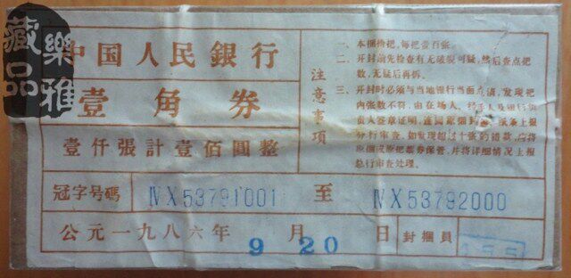 Три издания углового, новый набор новых наборов RMB One Corner, 1962 г. Версия 1 -го угла банка, 100 штук последовательных чисел