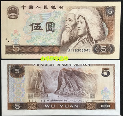 Четвертый набор из четырех выпусков старой версии старой версии Вуюань Вуюань 5 Юань RMB RMB BAOZHEN BANKNOTE COIN BANK CURTENCE 805 сингл.