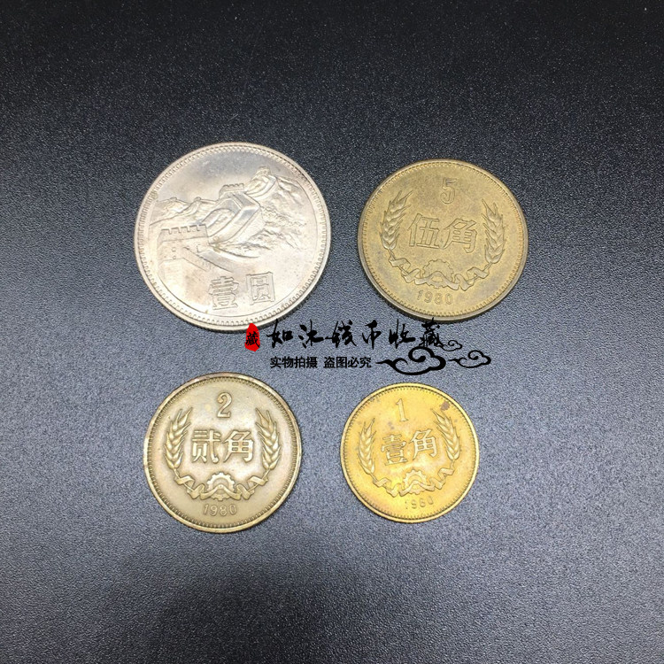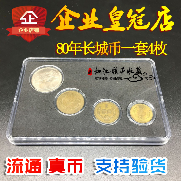 В 1980 году набор «Великая стена монета» из 4 реальной валюты 1 юань, 5 углов, 2 угла, 1 угол, 1 угол, 1 угол, 1 угол, валюта с большой стены, весь набор старых монет