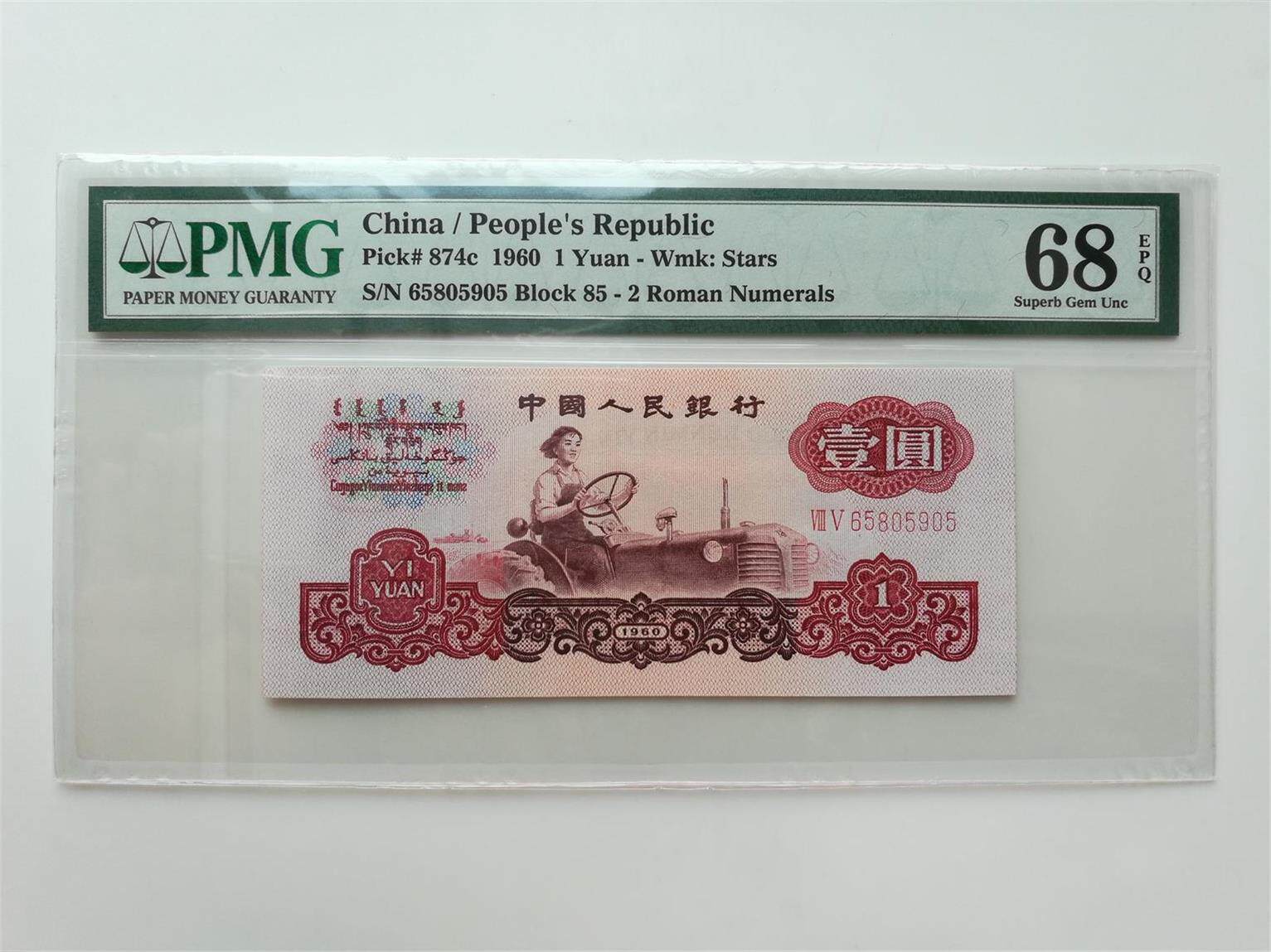 Третий набор баллов PMG68 RMB, один круг, пятизвездочный водяной знак, два Rome One Yuan