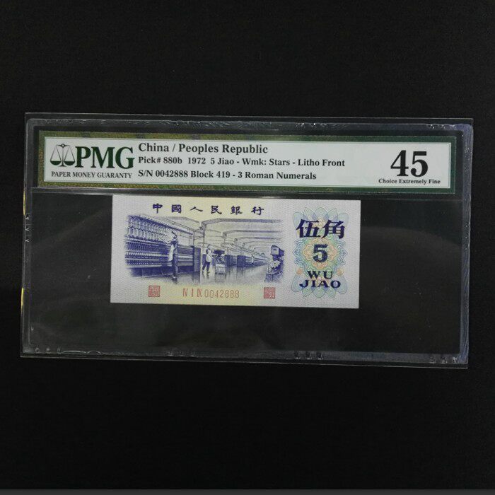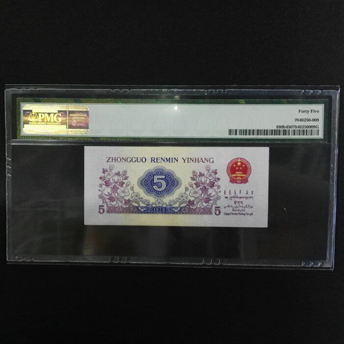 Оценка PMG Валюта 45 Текстильная пластина Текстильная версия водяного знака Пентаграмма Третий набор из 5 уголков RMB 5