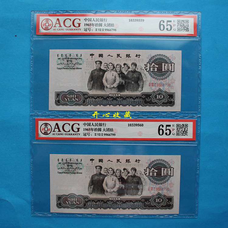 Айзанская рейтинговая валюта 63-66e Три верхняя версия RMB 10, United Three Rome Ten Yuan, три короны, одна