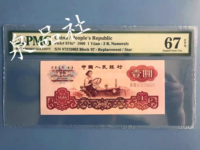 Xiaotaohong Make -два римских трактора один юани пять -звездочные водяные знаки PMG67, третий набор 1 юаней 1