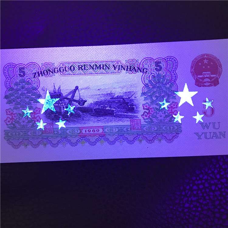 Флуоресцентная версия третьего набора RMB Steelmaking 5 Yuan с люминесцентным водяным знаком с оттенком пурпурного света Бесплатная доставка.