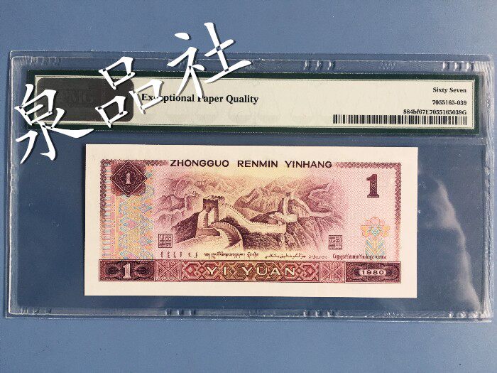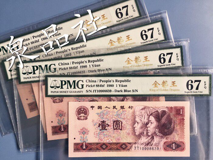 Один юань 801 Золотой драконский номер номер PMG67 Оценка банкноты банкноты, четвертый набор 1980 года 1 Юань на юань
