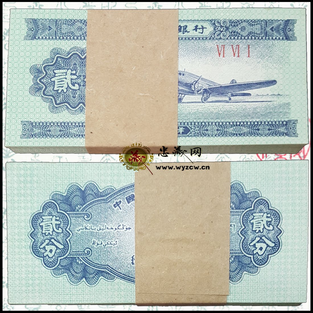 Вторая версия RMB в 1953 году, два очка и 2 очка, флуоресцентная версия оригинального уплотнения всего ножа 100 Zhongzang.com