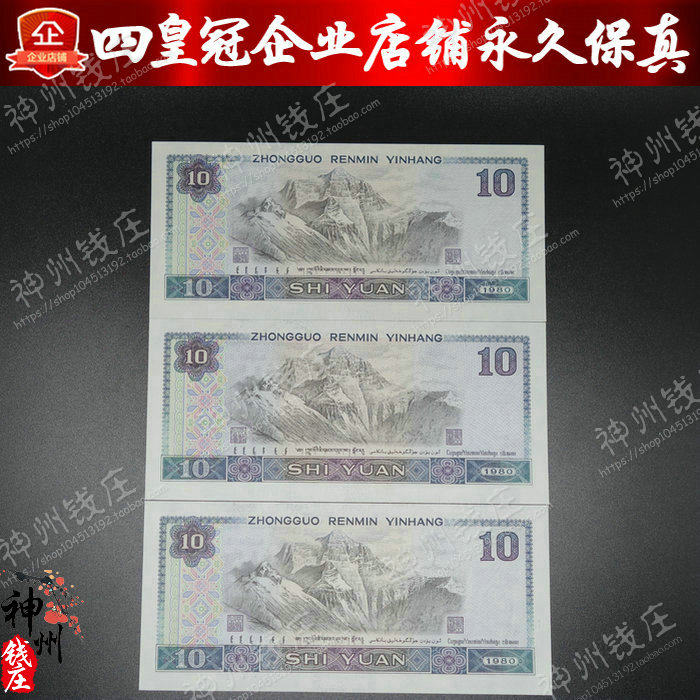 1980 Четвертое издание RMB 10 10 Yuan Banknotes 3 последовательных наборов Баопен [новый оригинальный билет]