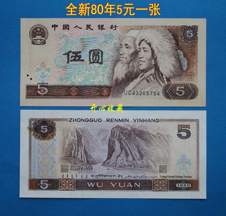Новый оригинальный билетЧетвертый комплект юаней, 1980 год, 5 юаней каждый. Номер и номер короны подлежат доставке!