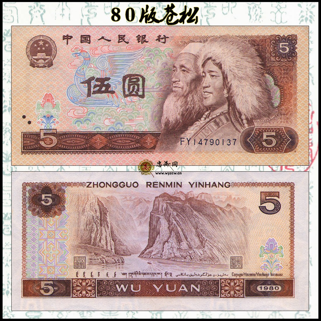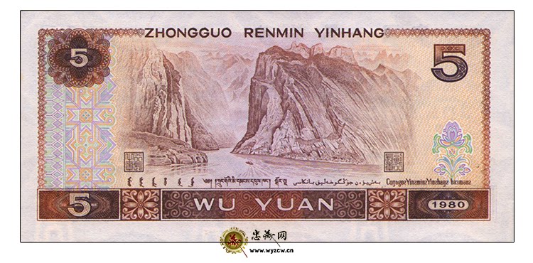 Cangsong Curai Crane Edition 1980 Четвертый набор из пяти -юань, 4 -е издание Wuyuan Rmb 5 Yuan Banknote 805