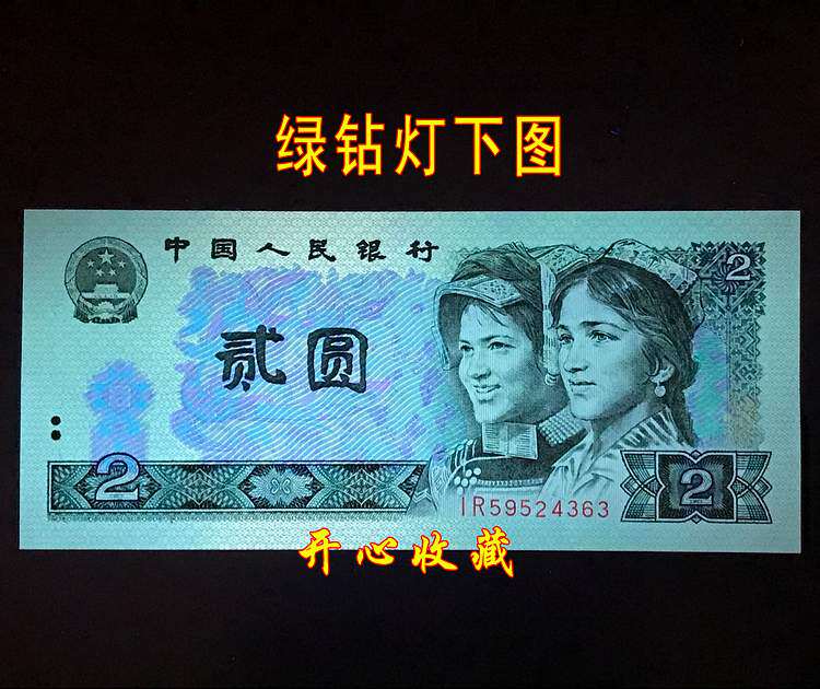 Новый четвертый набор из 80 -летнего RMB Green Diamond Four Edition 4 Версия 2 -й Yuan 802 Green Diamond Fluorescent Coin Fluorescent версия