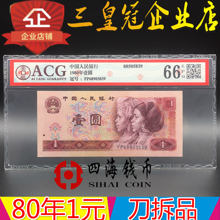 Четвертый набор из 1,11 юаней из юаней 1980 801 Рейтинг банк валюта рейтинг ACG 66 баллов