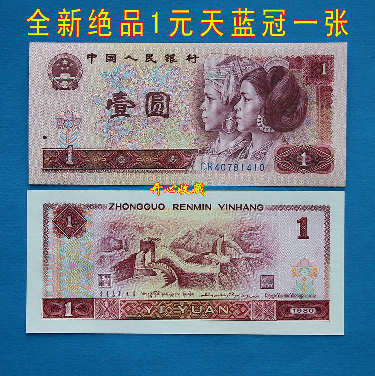 Четвертый набор 80-летнего 1 юанька Sky Blue Crown CR801 Sky Blue Crown 4 версия RMB одна новая единственная картинка Fidelity One