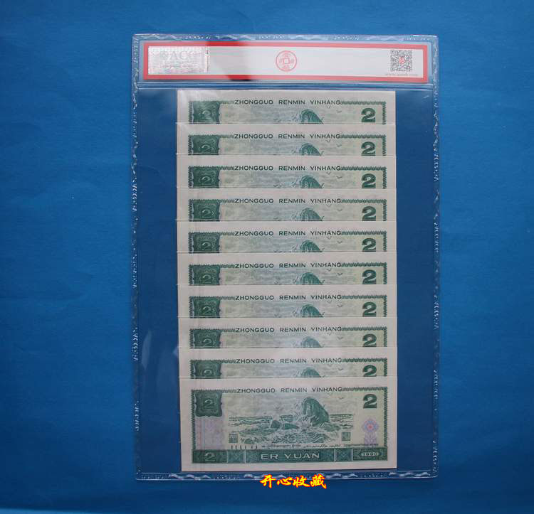 ACG Aizang градуированные монеты 65E-66E, новый изысканный четвертый набор зеленых банкнот-призраков номиналом 2 юаня 1990 года, набор из 10 последовательных цифр.