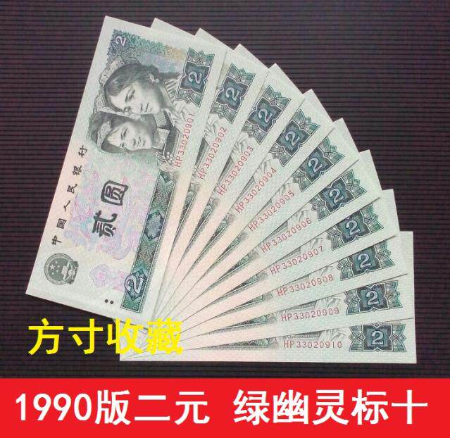 Четвертый набор RMB 1990 Edition 2 Yuan Binary Green Ghost Standard 10 Компания № 902 Флуоресцентная версия