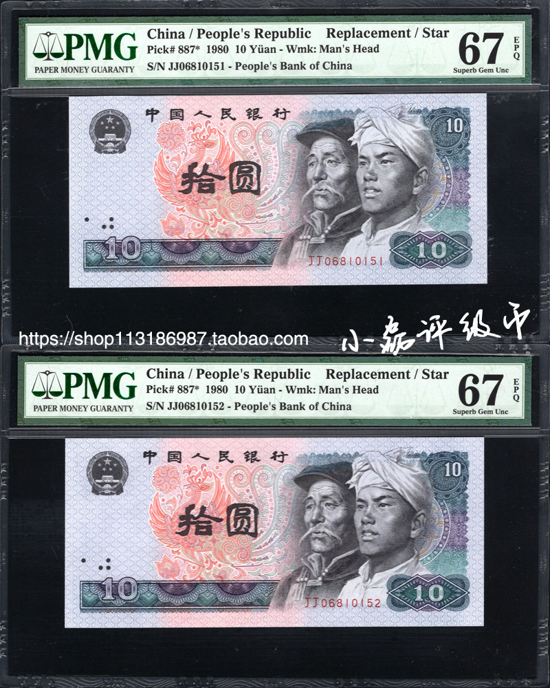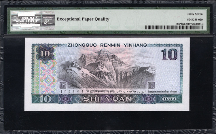 PMG Rating 67 очков 67 баллов. Четвертый набор из 10 юаней, 10 юаней, 10 Юань 8010 Дополнительный номер 劵 8010