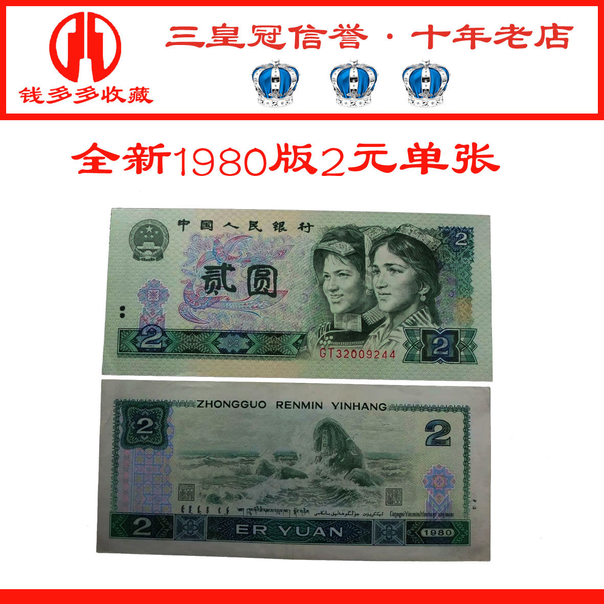 Новый третий набор четвертой версии, набор RMB 2 Yuan Two -uan Banknotes в 1980 году