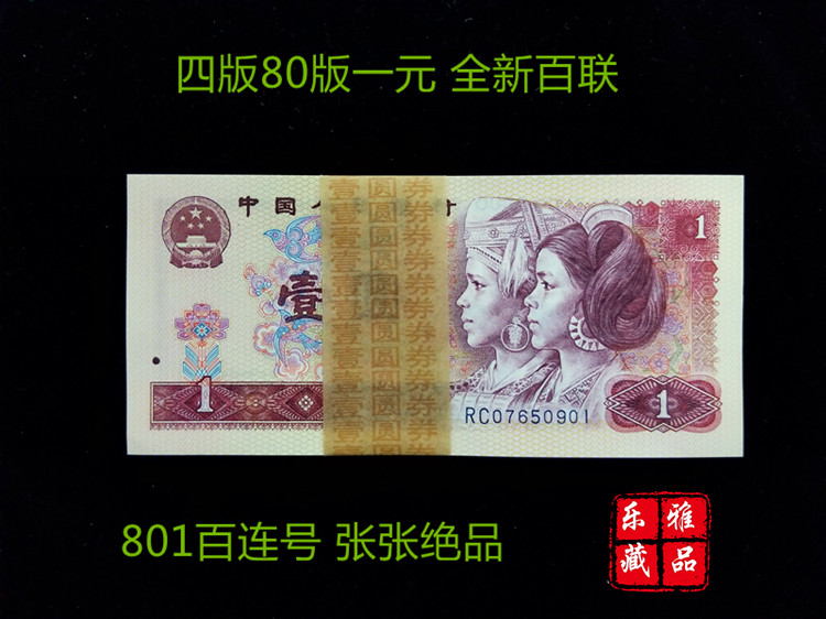 SPOT 801 Четвертый набор Бейлиана из RMB 80, один юань сотня последовательных чисел, 1980 год. One Yuan 100 Компания № 801 ВСЕГО НОЖИ