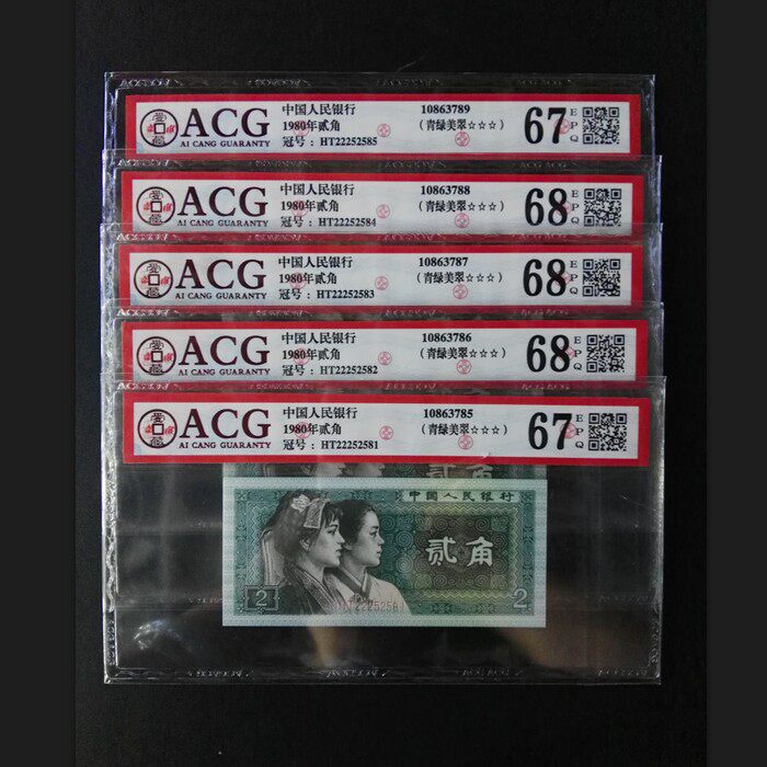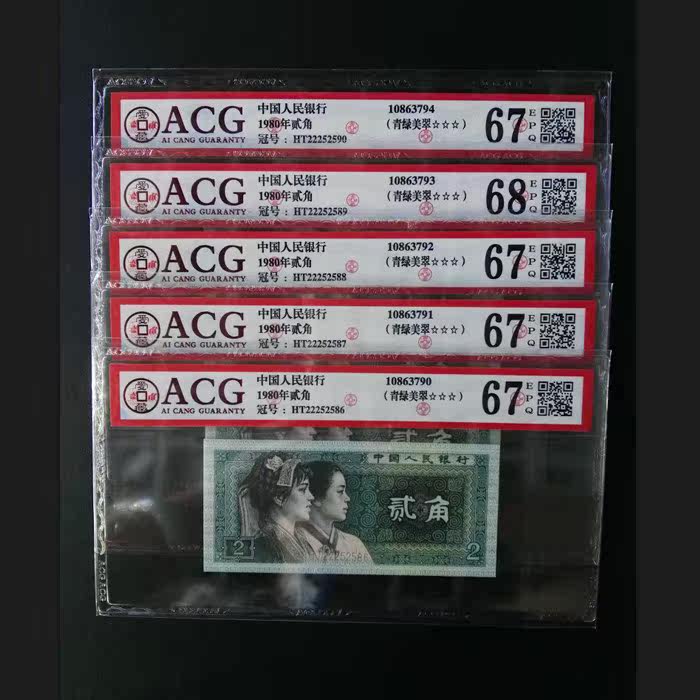 Оценка ACG валюта 8002 флуоресцентная валюта "зеленая зеленая красавица" 2 угол, четвертый набор стандартных юридических наук Десять последовательных чисел
