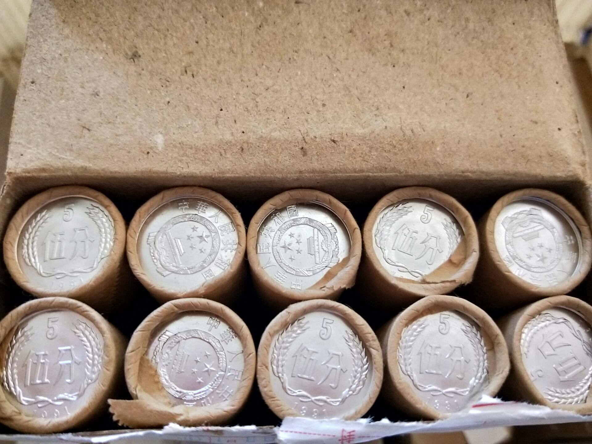 В 1991 году 5 баллов и пять банок монет были первоначально свернуты до 50 монет монет на сумму 915 монет для отправки рулонов