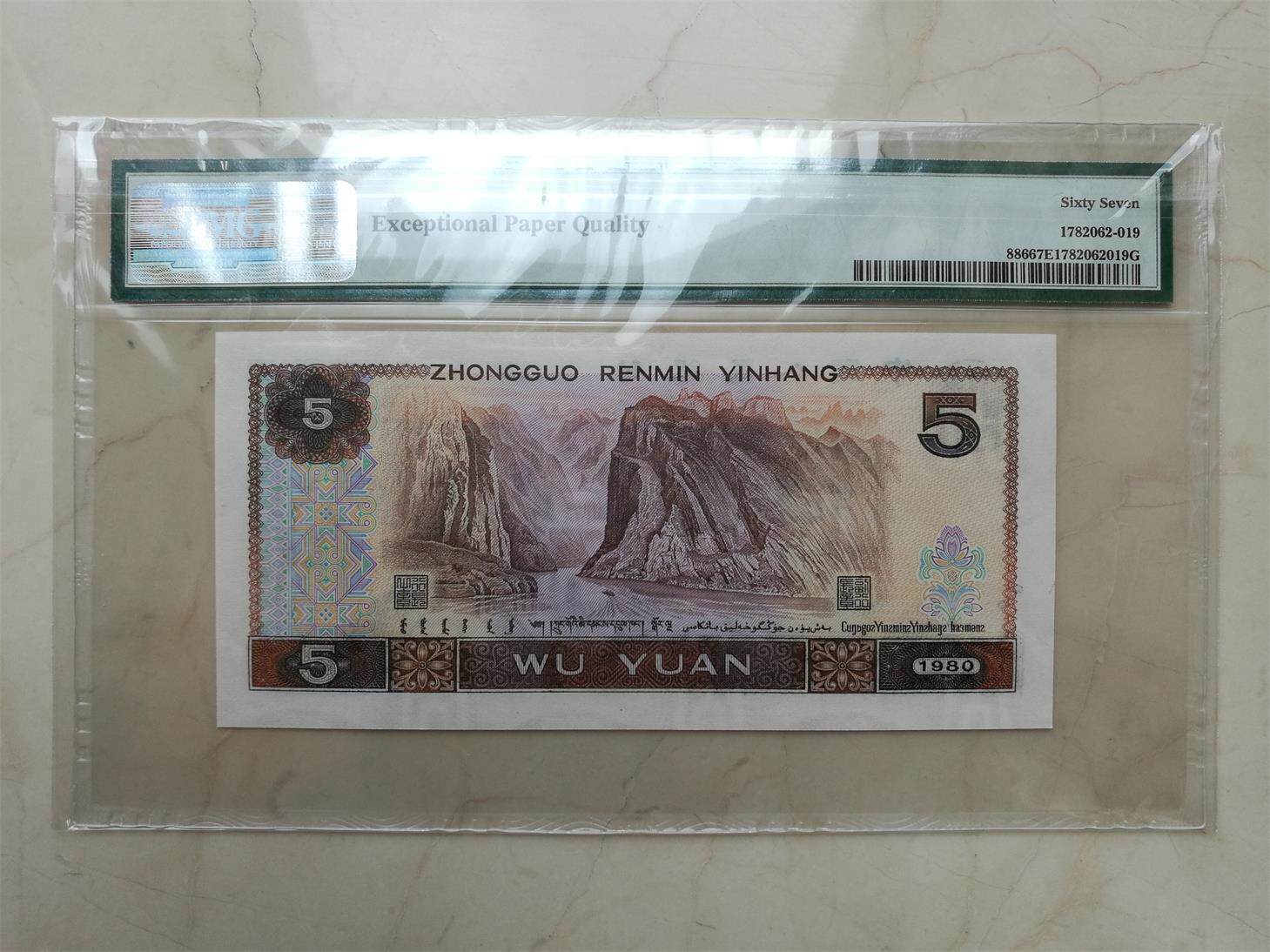 805 Wuyuan Pmg67 Оценка оценки монеты Четвертое издание RMB 1980 Пять специального предложения Юаня Бесплатная доставка