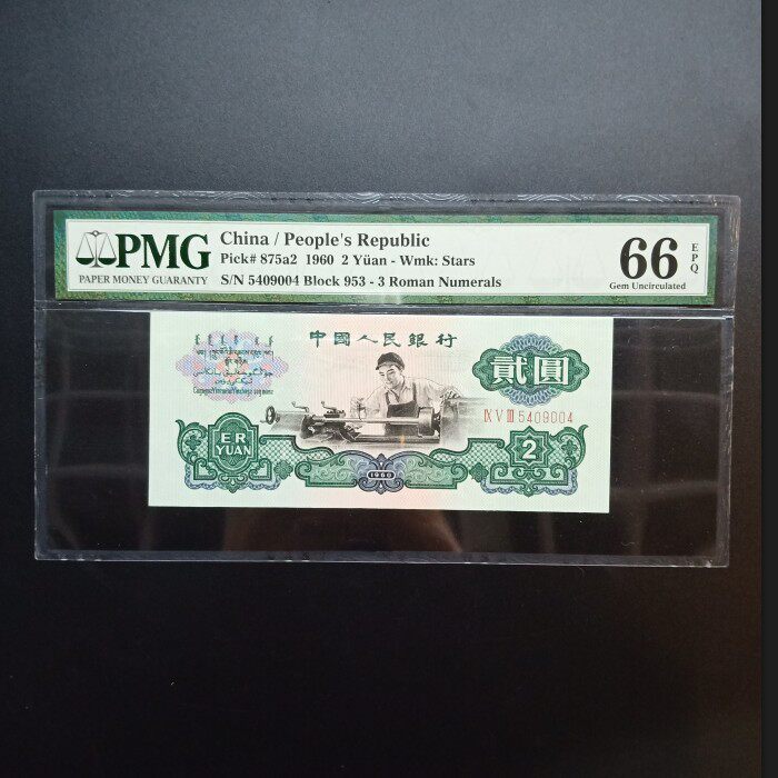 Оценка PMG Валюта 66 -Точка автомобиля 2 Юань пять -звездочный двоичный двоичный двоичный двоичный бинарный состав.