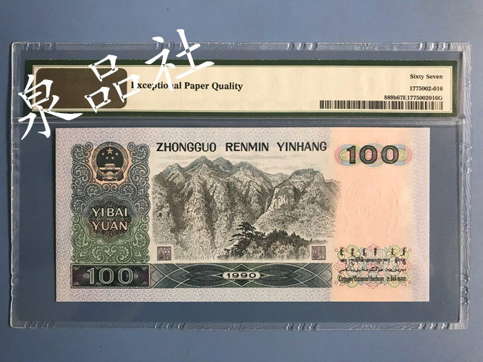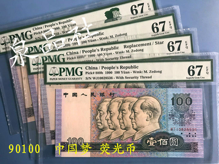 100 Юань 90100 Китайская флуоресцентная монета Dream Fluorescent Coin PMG67 Оценки банкноты банкноты, четвертый набор 1990 года 100 Yuan One Bai