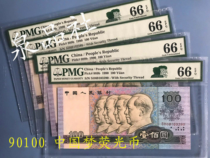 100 Yuan 90100 China Dream Fluorescent Coin Rating PMG 66 очков, четвертый набор 1990 года 100 Yuan One Yen в 1990 году