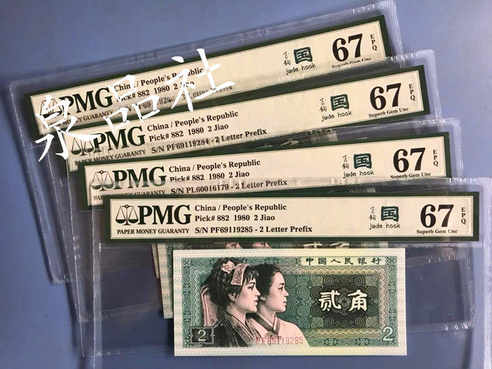 Два угла 8002 Jade Hook Country PMG67 Оценка банкнота банкноты Четвертый набор RMB 1980 Два угла и угла